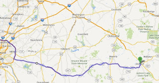 Jackson, Ohio to Frederick, Maryland. 443.9 miles.